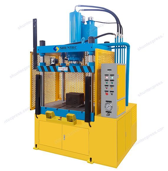 與2柱壓力機和c型框架壓力機相比,4柱壓力機提供了四面可操作的工作區域,并且是定制的,幾乎沒有工作尺寸和噸位的限制,4柱壓力機天生就是一款可以放心的重型液壓機的機器,四平八穩。信德四柱壓力機廣泛應用于需要容納各種尺寸模具安裝和生產,如修邊、模切、拉伸、沖壓等。