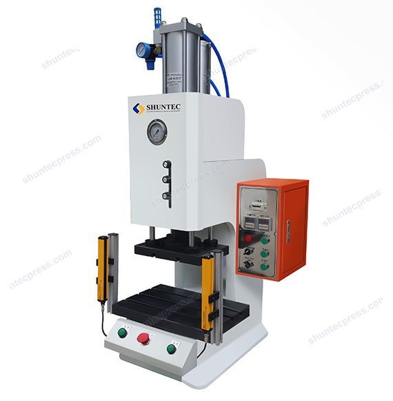 信德的標準小型氣動壓力機也叫空氣壓力機,力從300KN到2.2噸不等,是一種高性價比的壓力工具,廣泛用于鉚接、壓裝、裝配等。氣動壓力機使用空氣作為清潔和節能的動力源。氣動壓力機可以被設計成一個獨立的單元,或安裝在臺式或落地式支架上作為生產線單元。我們還可以根據您的應用和規格,定制制造簡化的4柱式結構的氣動壓力機,以及2柱式、C型框架和臺式結構的氣動壓力機。