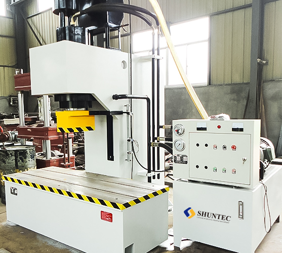 工作前,四柱液压机应空载运行10分钟,确认液压系统压力正常,无卡涩、过热等异常现象;工作滑块只有在运…