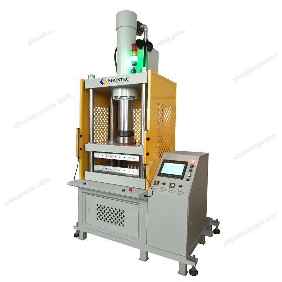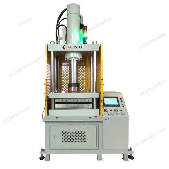 信德4柱40噸加熱平板壓力機是為電子行業的熱壓脹形多層膜開關而定制的。