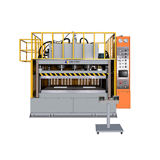 信德-P6 4柱80噸加熱臺板液壓機是為我們來自美國的客戶定制設計的液壓熱成型機。這是一款定制和制造的加熱臺板壓機,適用于地毯熱壓成型應用。加熱臺板液壓機的所有參數,包括噸位、行程、開放式日光和床尺寸,都可以定制,以最佳地滿足您的要求。